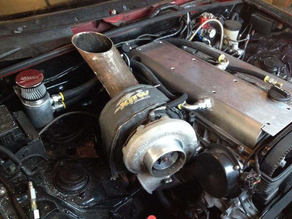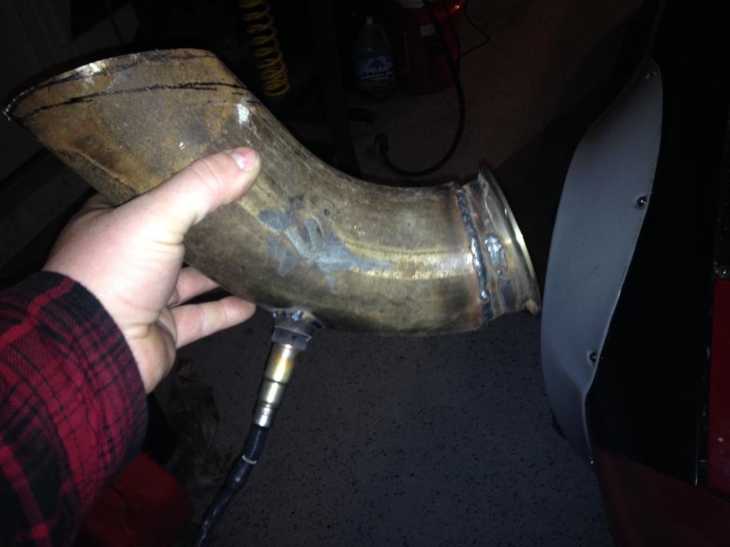 As for an update we mocked up the charge pipe on sunday I am waiting for my buddy to finish welding it he can be slow some times. It is a very busy charge pipe and the picture does not show the BOV in place witch is getting welded to the elbow on the compressor. I am very happy with the way it came out and I will post some pics when it goes together should be next week. I also ordered a bunch of fittings I am switching my BOV fic signal and most all my vacuum lines to hard plastic push to connect lines. This will be a much cleaner look and function very well. Here is a pic of the mocked up charge pipe you cant tell in this pic but the Vband clamp near the compressor only has about 1/16 extra room when taking it off it is a perfect fit.
