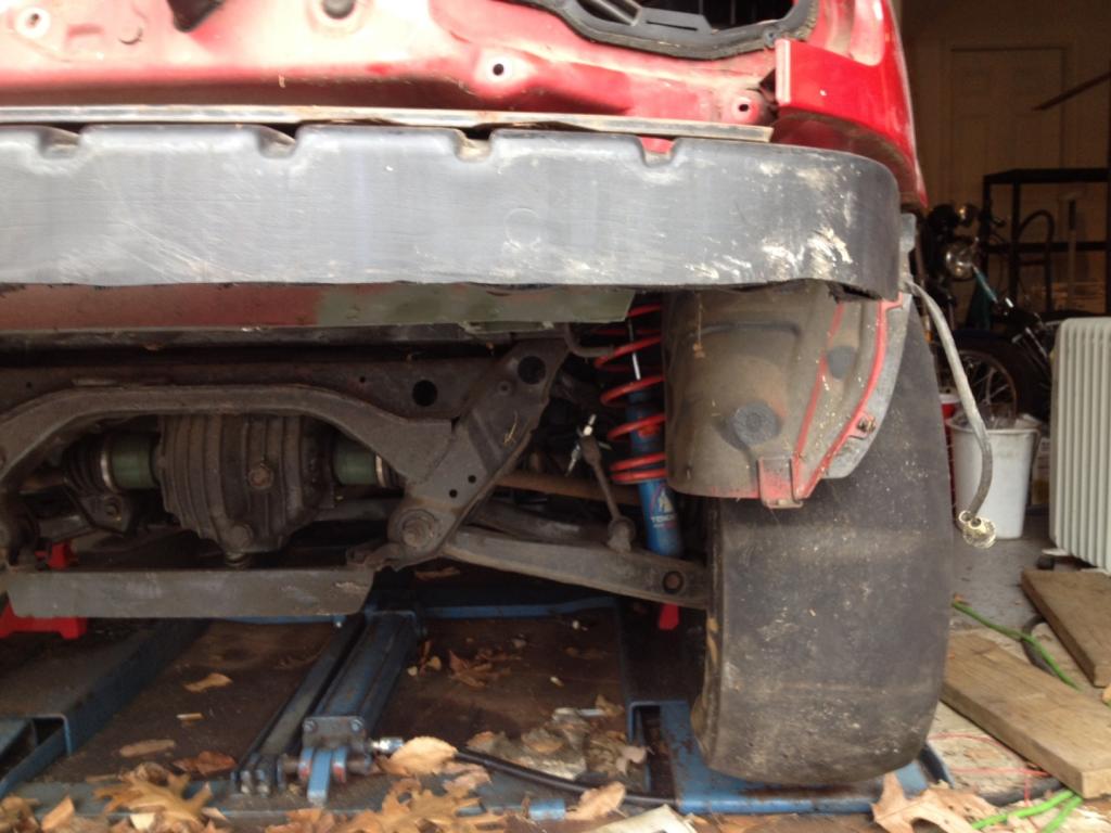 Ok got some more work done last night and should get more done tonight trying to push to have the car running this weekend so I can get other stuff done. Drivers side rear fender is all welded up and making brace for flare. Need to weld up the passenger side and make a brace for the flare. Also need to mount rear sway bar for the first time in 4 years, lol and look at mounting for front sway bar. Then off to the shop for charge pipes. After that its take everything off that needs powder coat and start body work to get ready for paint.