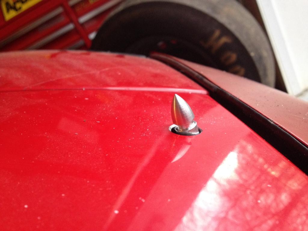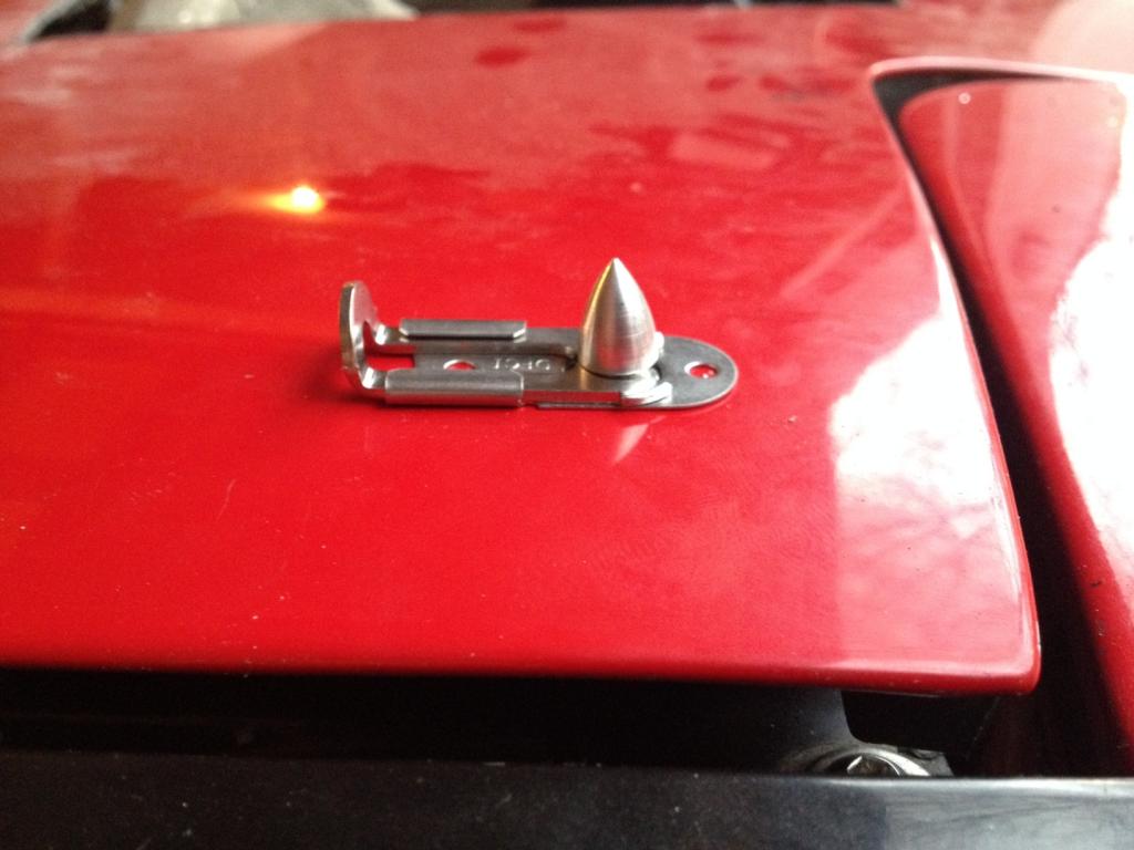 Got my hood pins almost all the way installed. My rivit gun at the house is junk so I am borrowing one from work and got some nice steel rivits from work as well. The two in the very front of the hood have too much angle so I need to machine the slot bigger so the slid lock will go thru. Also there is a shot of my exhaust with the 02 sensor location. It is the same distance from the turbo as last time witch is technically too close but I have not burned up a sensor yet so we will see how it goes. Also you can see in the one pic the sensor is place at the bend so it is basically straight out of the exhaust in hopes to get accurate reading on such a short exhaust system.