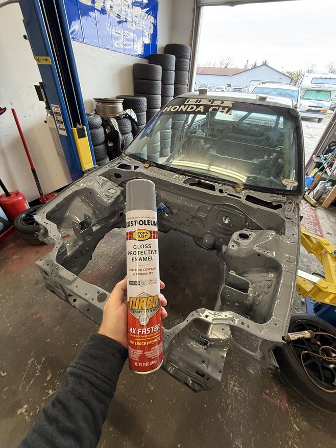 The order of operations puzzle has been fun. I needed to get the engine bay painted to mount the master cyl so that I can run new brake lines so that I could flat tow it to the car wash to prep the interior for paint. However, I've gone much farther in disassembling the entire front end with both cross members out, including the steering column and pedal assembly. So now I will probably end up bucket washing the interior by hand like I did the bay.