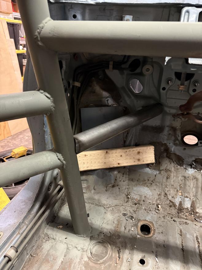 There is some assymetry in the cage, with an X no the passenger side and the double NASCAR bar on the driver's side, and the door bars land in the A pillar at different heights. I also wanted to maximize room for a dead pedal on the drivers side, so that footwell bar is higher.