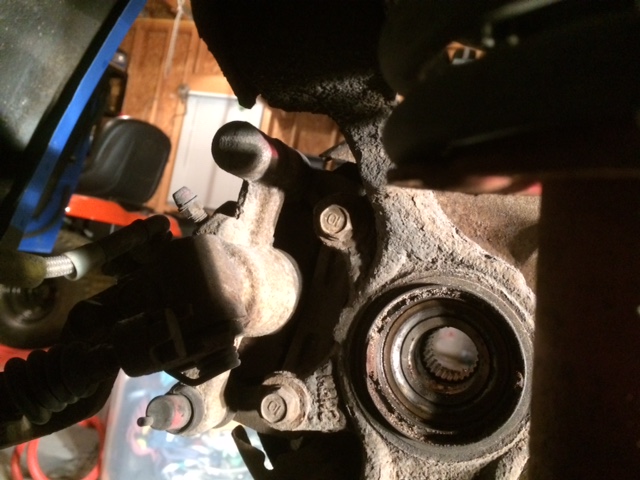 I wish I'd gotten a better picture, but I did notice some debris and rust color near the wheel bearings, inboard of the seals. I suppose now is as good a time as any to swap those out.