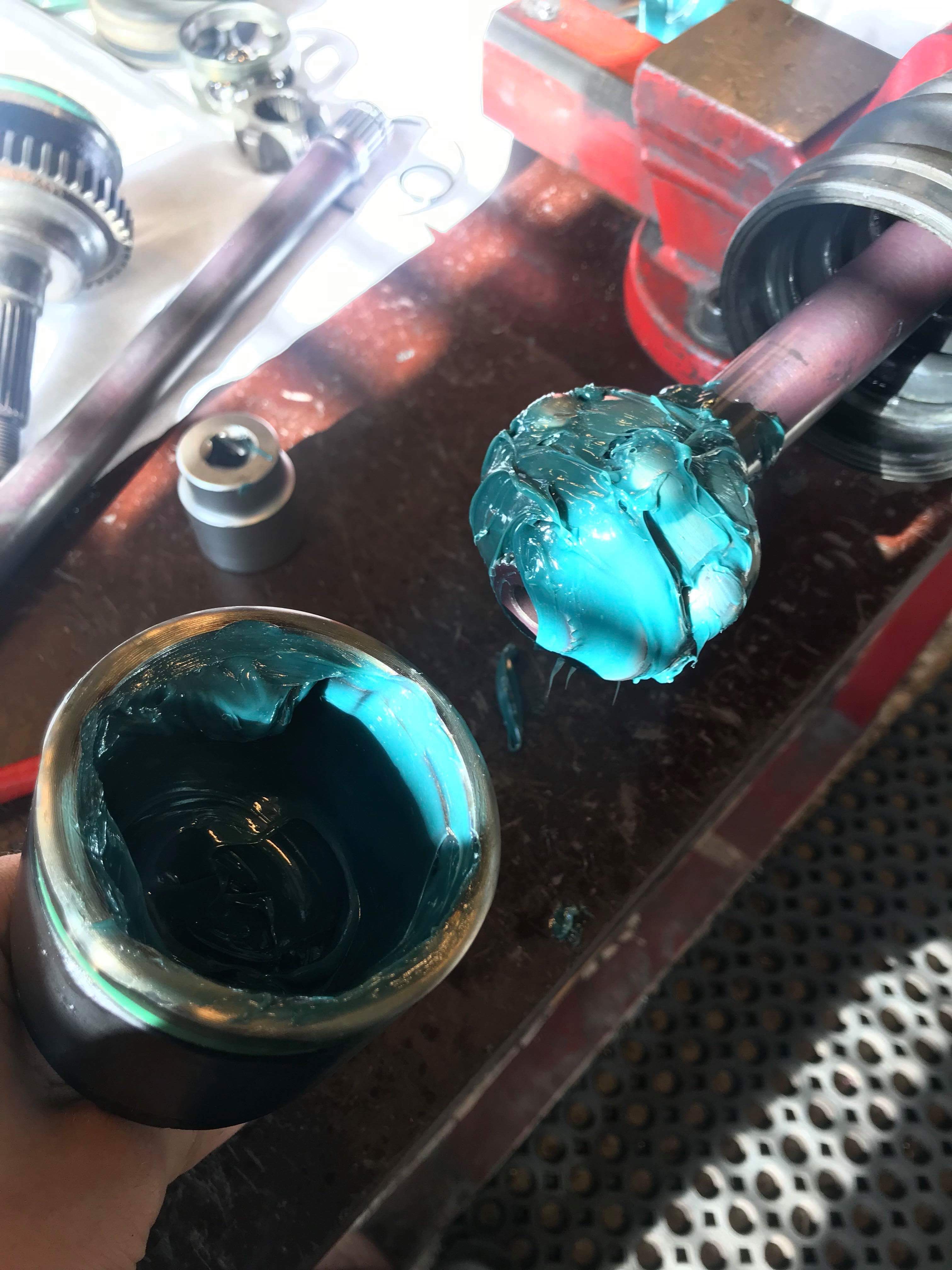 Also got GKN to take a few pics during assembly of the axelshafts, the high temp/high shock resistant motorsport axel grease has a funny blue/green colour.