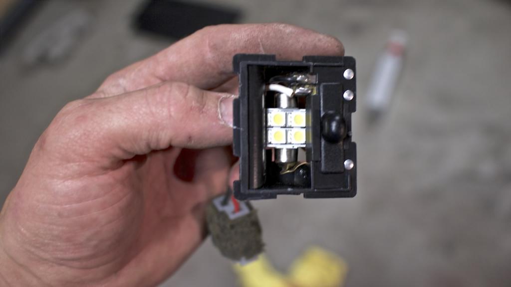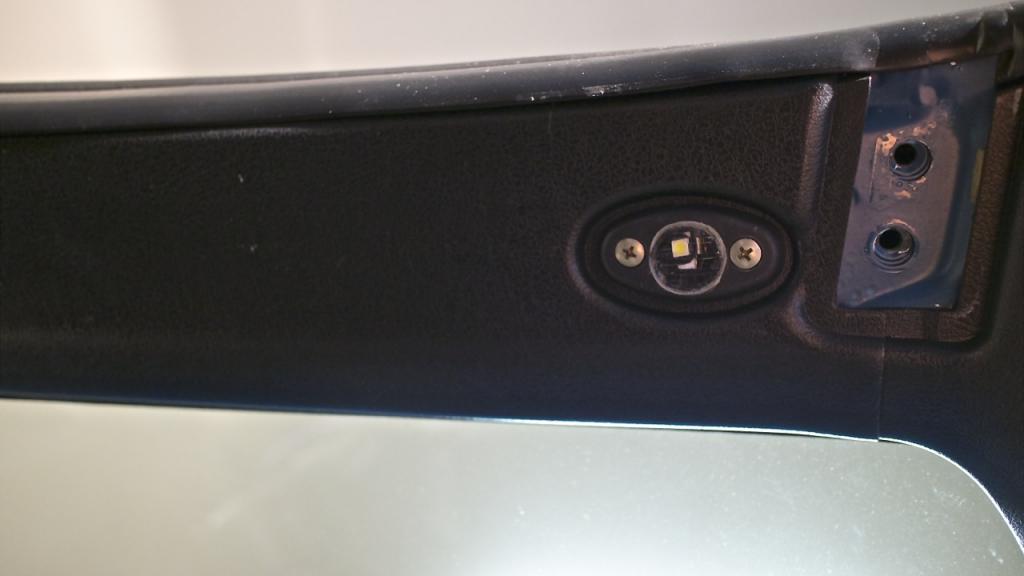 It isn't perfect looking even after polishing the plastic for 15-20 minutes, but it works, it's bright, and unless it was pointed out to you, you probably wouldn't notice. Far cheaper than anything aftermarket out there. $5 for the LED, scavenged light socket from the old car, $2 for an inline fuse, and soldered to the contact points on the passenger footwell lights.