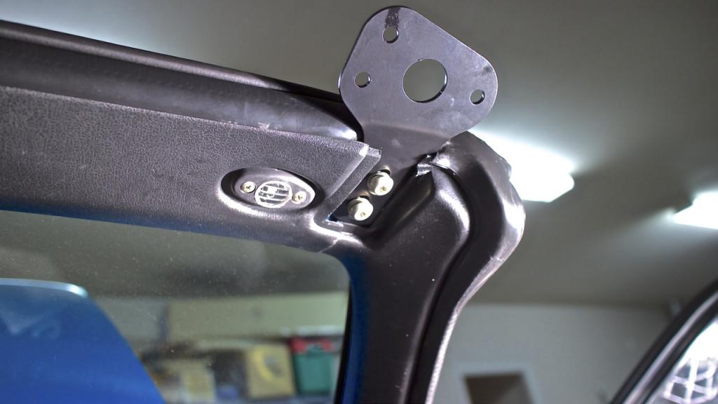Also put the Rennenmetal hardtop bracket on in preparation of the hard top being done today. Decided to use the stock bolts rather than the ones provided with the brackets. I like the gold zinc rather than silver hex bolts. I'll probably trim the plastic around the bracket OR cut up a spare trim piece and make a cover that will velcro on for easy removal to really hide the bracket.