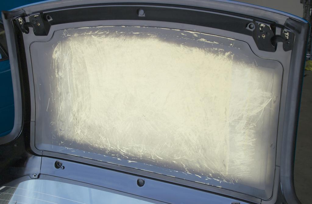 Went through two razor blades and a **** load of goo-gone to get all the old adhesive off the top. Better to use a nice clean surface than old adhesive that may or may not be very strong after 12 years. Looks scratched to hell but that is just black paint overspray that was taken off.