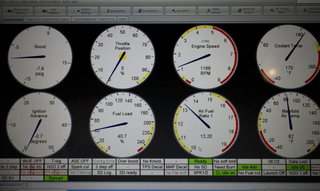 Here is what the gauges look like after WUE. Still some slight variation in the AEM/TS AFR gauges.