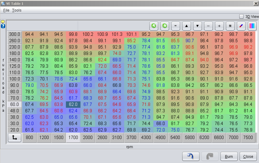 Looks like it's getting there. It looks like the high rpm / low kpa areas need some work still as well. After you get most of the table sorted, try this:
