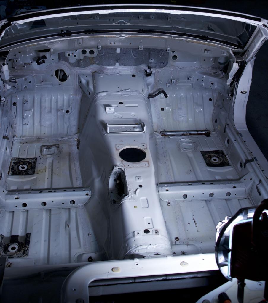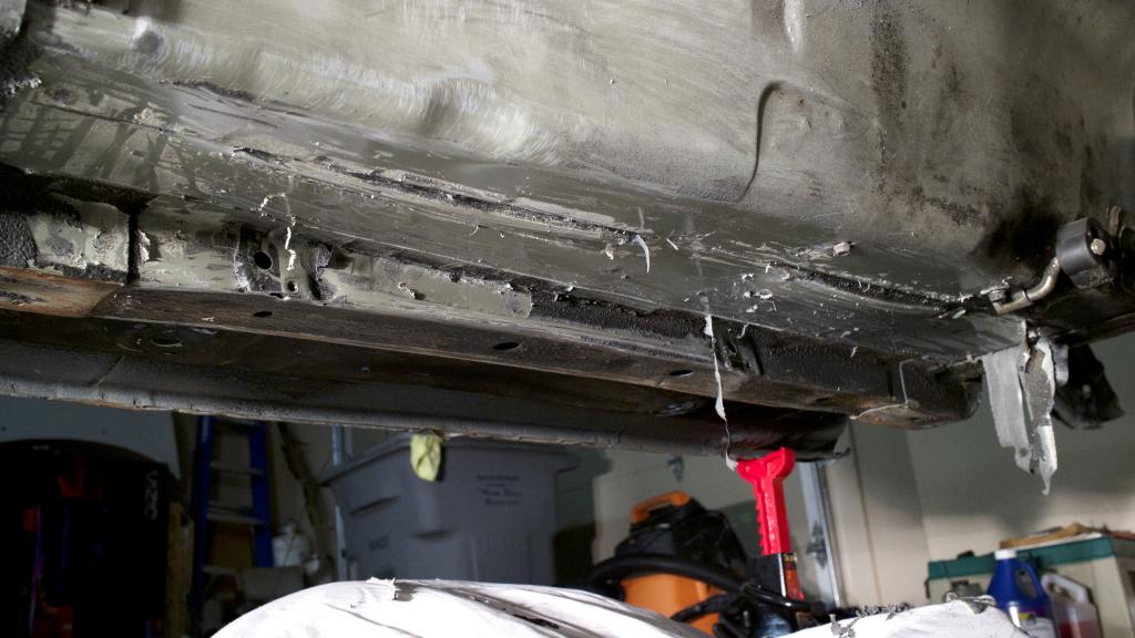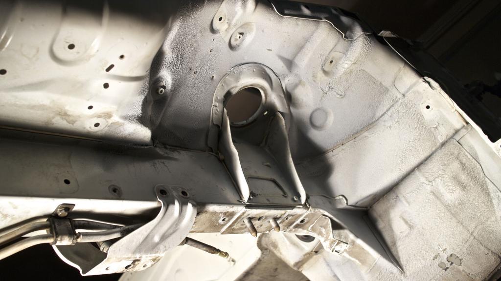 Missing undercoating from the rails and transmission tunnel