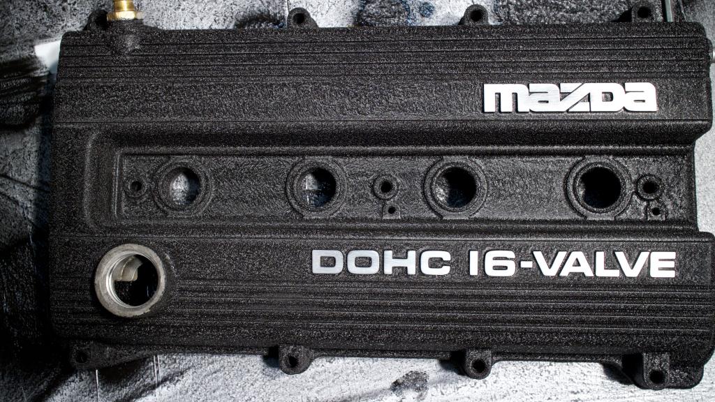 Valve cover turned out great, nice tight wrinkle finish. Used a razor blade and 80/400/600/2000 grit to give the lettering a nice brushed look.