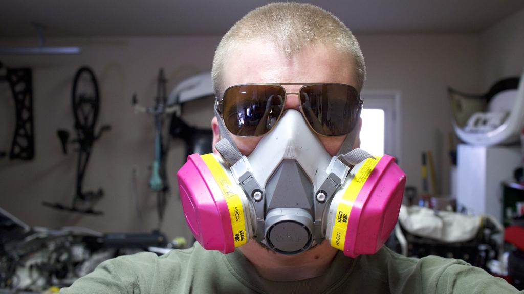 When spraying out the manifold, wear proper protection, and I aint talking about no jimmy hat. Oddly enough my mask fits the Miataturbo theme pretty well!