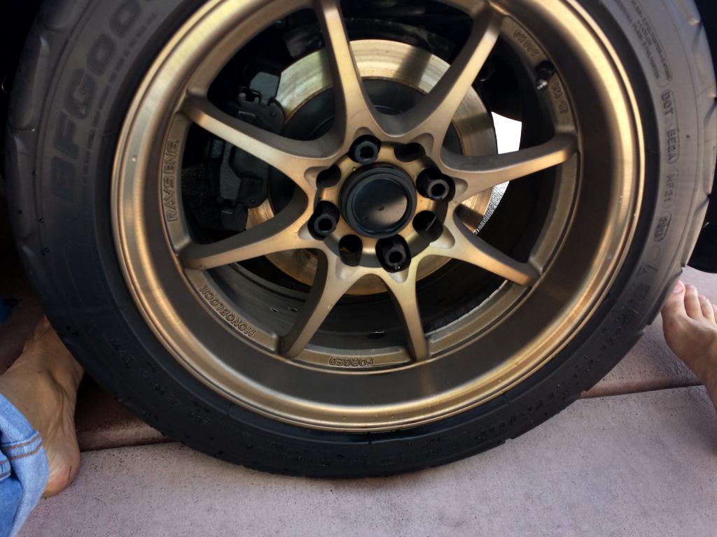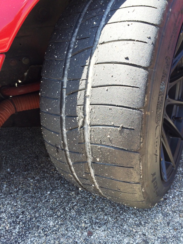 By the end of the day I was feathering my throttle a lot better through the turns, rolling the car smoothly through the sections, and finding the grip limit of the Rivals. I had to lower my tire pressure to around 25 psi before I stopped getting the feeling of having the tires coated in oil(102º outside). Luckily a kind gentleman let me borrow his pyrometer to give me a more accurate idea of tire pressure needed.