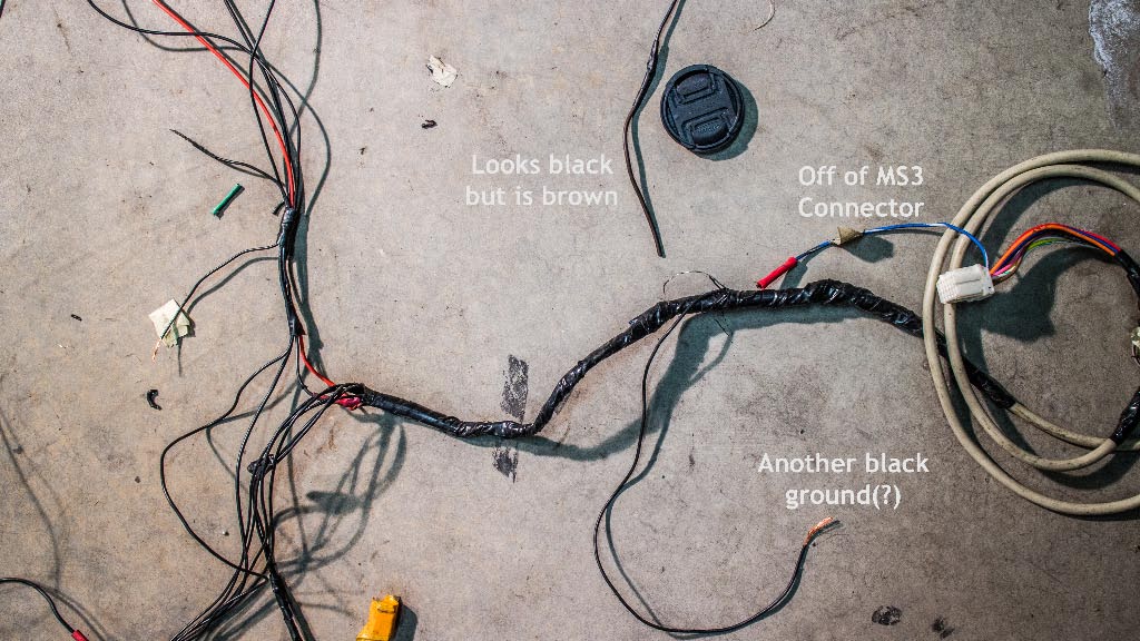 Anything in the ms3 plug, check the excel file on the cd, also, braineack color codes his writing in the ms, he might have a description of the pin that each write connects to on that harness.