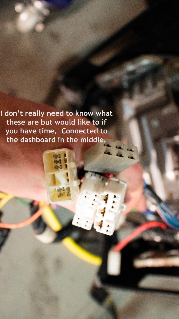 Seriously wish I could pay one of you guys to come to my house to inspect the harness for me, wiring just doesn't make sense to my brain. Saying that there were several wires with loose connections that I cut apart, stripped the casing, re-soldered and heat-shrinked back together. I want to delete more but I just don't care anymore about the 2-3 lbs I'd save from the harness.