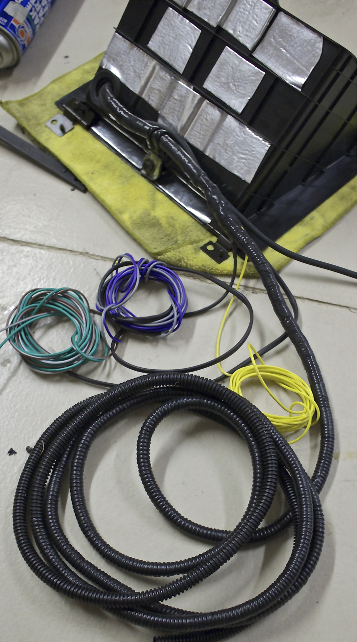 Separating the wires for their different locations. The big thick coil goes to the pump/tank/battery posts to the rear of the car. The controller is self fused so no need to worry about putting a fuse inline in the system.