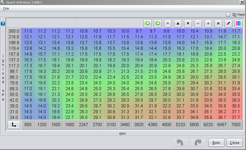 On that note, I was comparing his new Spark Advance Table with my original file, and noticed he cut back on timing pretty significantly, even with all the beneficial upgrades I've done to the car(where do I begin?).