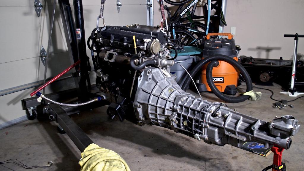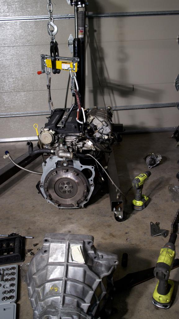 Transmission connected. Luckily I read a diy on making your own clutch alignment tool otherwise that would have been a bitch to put together.