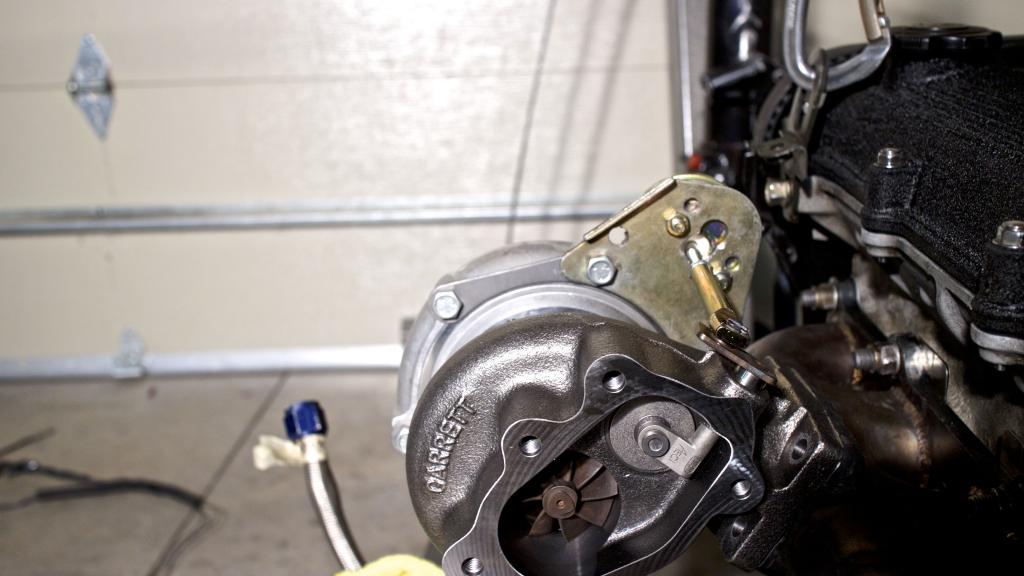 When asking the wastegate if it dressed to the left or the right it said no. Don't seem to see any bends in relation from the rod to the actuator housing. I may need to put another washer in between the actuator and the mount to make sure it doesn't rub on the compressor housing. It isn't rubbing very bad but it is still touching slightly.