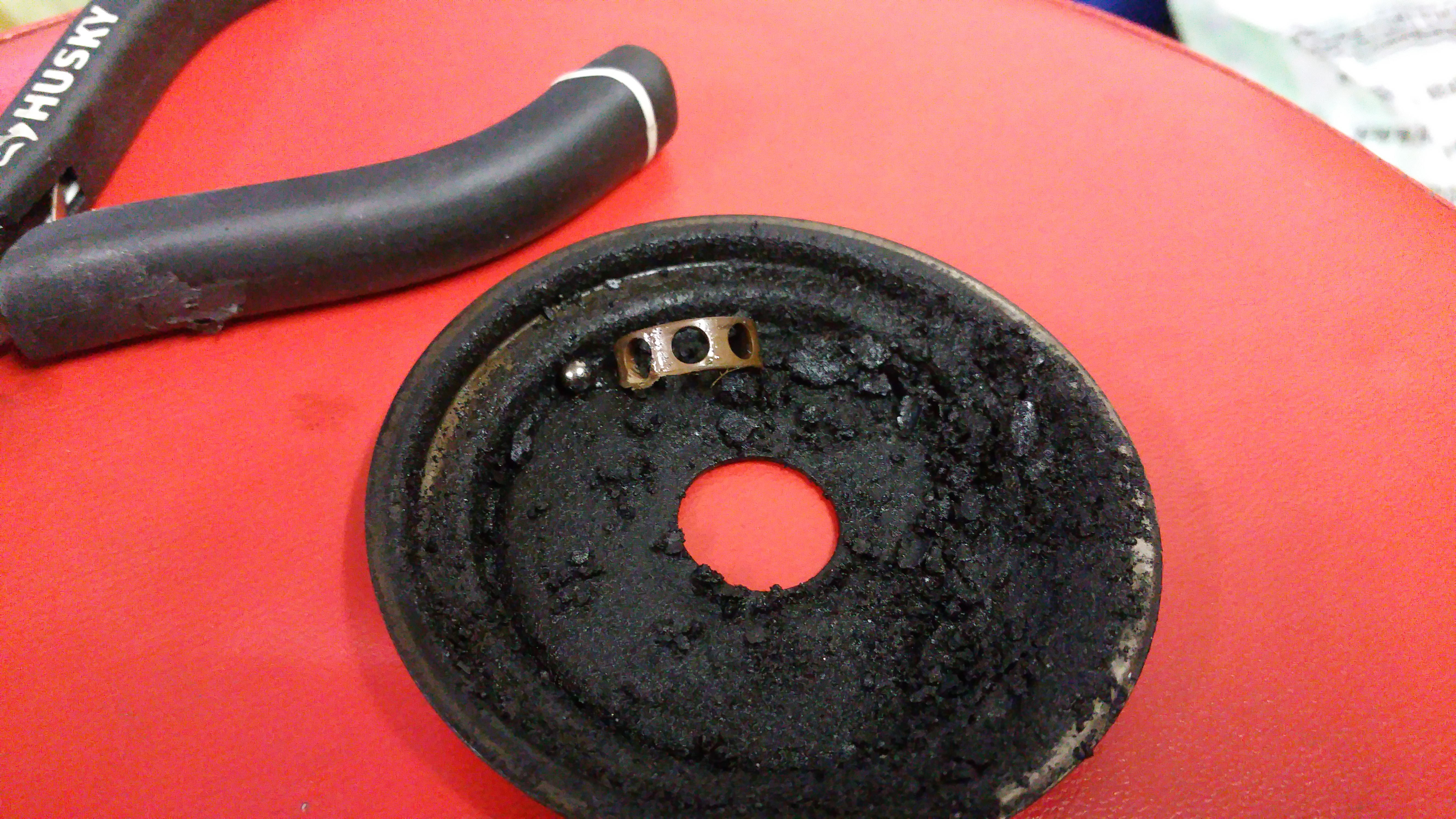 Opening it up further I found the bearing races in pieces. Sitting in the oil pan for who knows how long must have turned them black.