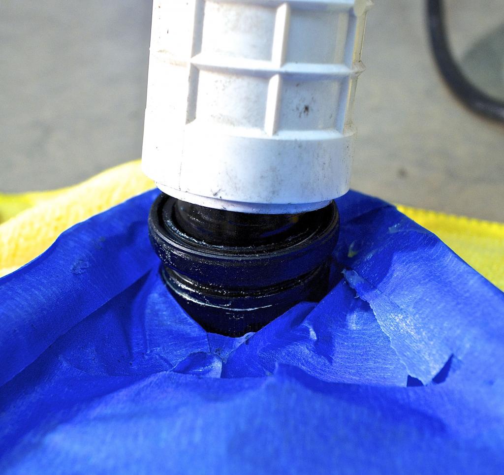 I used an old seal from my transmission and it fit perfectly over the metal retaining part of the boot. You don't have to do this it just ensured I didn't damage it, and it gave me a better fit with the PVC Pipe.
