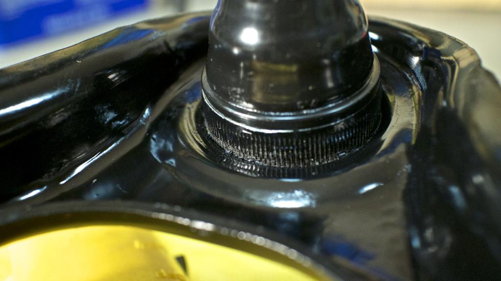 Position the boot onto the ball joint and with a rubber mallet lightly tap on the pvc pipe to get the extremely tight boot onto the ball joint. Try not to flex the boot too much or you'll eject some of the grease.