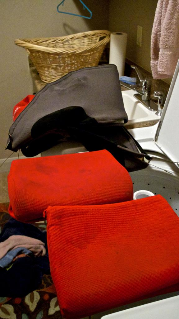 Just waiting on the fabric to dry so I can refinish the seats in black.