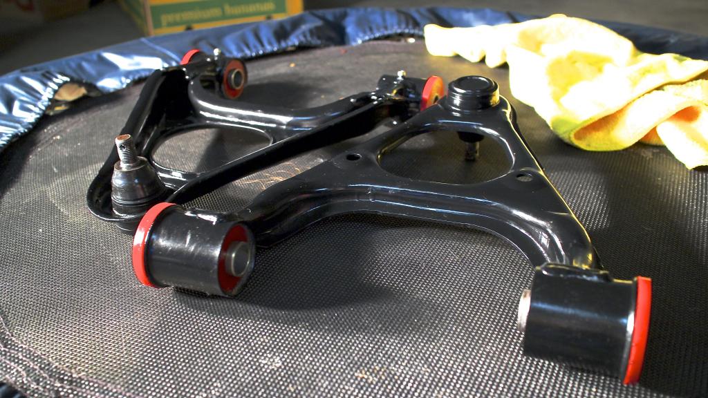 Upper Control arms all done, that was a messy job. Checked all zerk fittings to insure that grease channel through the poly wasn't blocked. Put silver anti-seize on the interior of metal bushing to help with corrosion.