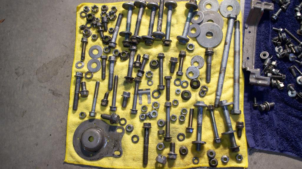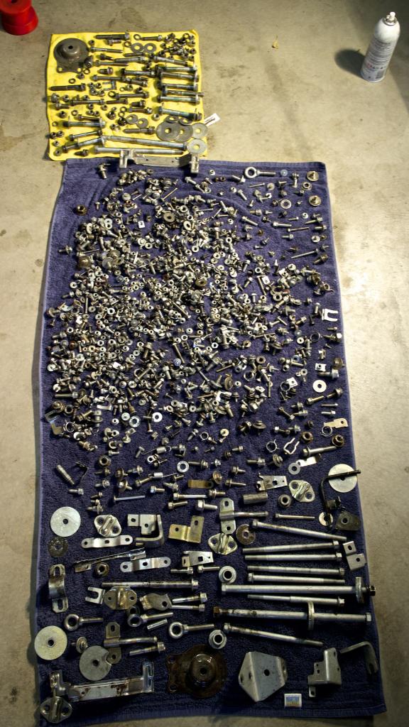 Then I realized that that is about 2 cars worth of bolts, and I relaxed big time after that. Strangely I can mostly recall where everything goes, or at least the general area it belongs. It'll suck major donkey *****, but worth it in the end.