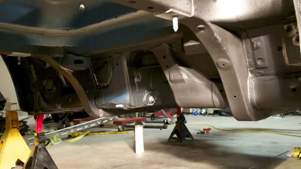 Took off the old frame rails and laid down a a coat of rubberized under spray. I wasn't happy with the truck bed liner in terms of noise and chipping resistance, so I decided to protect it with a coat of rubberized under spray to dampen noise and help things bounce rather than chip.