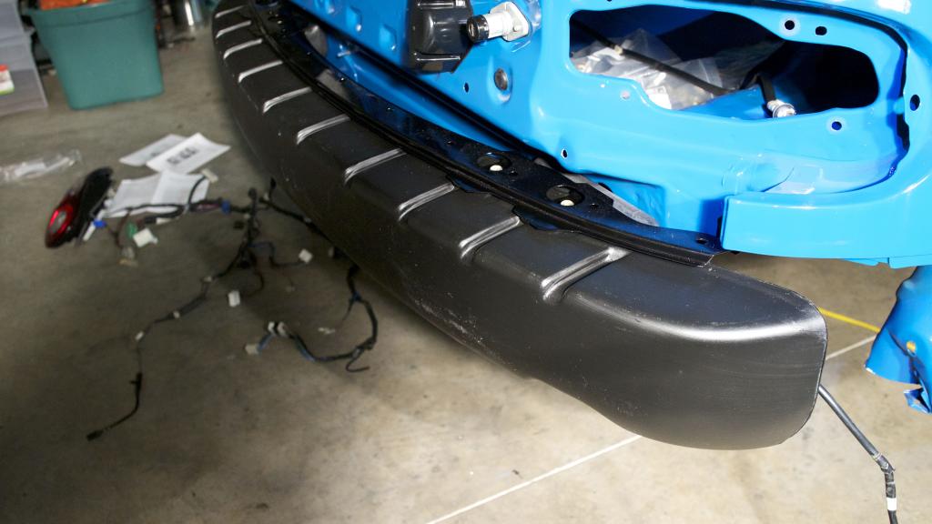 Got the bumper mounted, it is starting to look like a car rather than pieces now. Nice to see the pile of bolts slowly decrease.