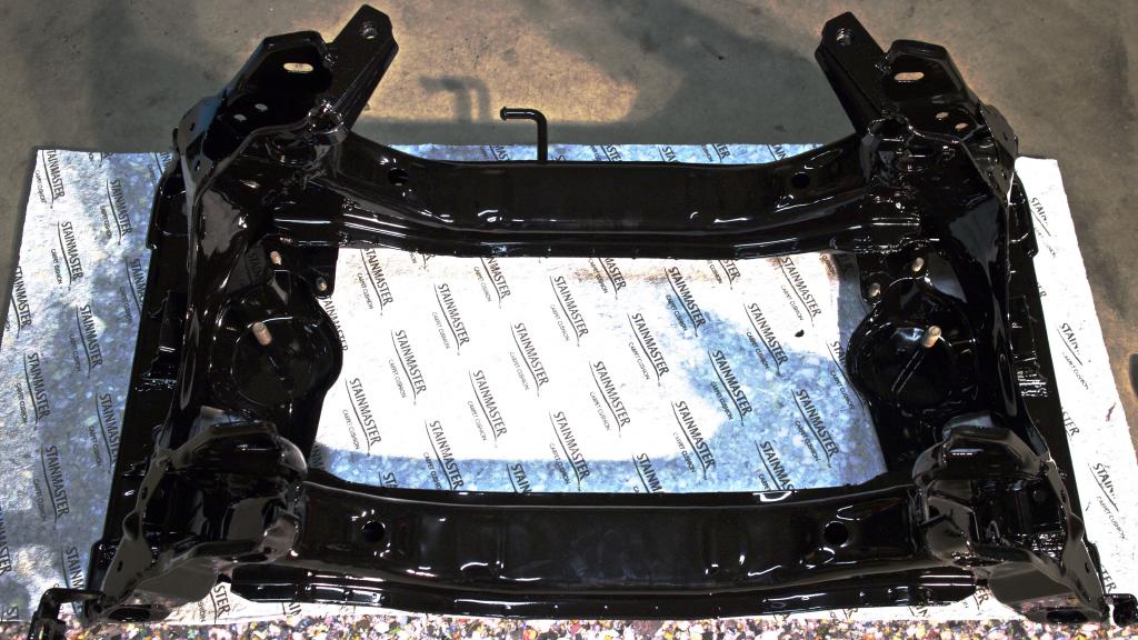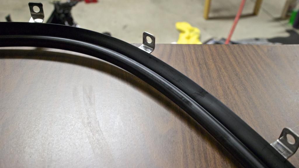 Also got the frame rail cleaned up and slotted in. Lots of overspray, so it took a TON of rubber restore to get it back to being nice and healthy again. It is still curing in this picture hence the splotches.