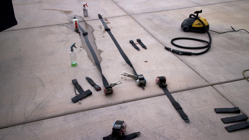 Decided to clean 25 years of "laps" out of the belts. This was an exercise in holding back some dry heaving due to how much filth came out of the belt fabric.