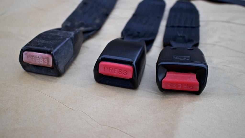Finished up the seat belts...kinda. The adhesive got too sticky sitting in the sun so it pulled some of the black off the female connector, so I need to redo it. The red turned out great on the button though.