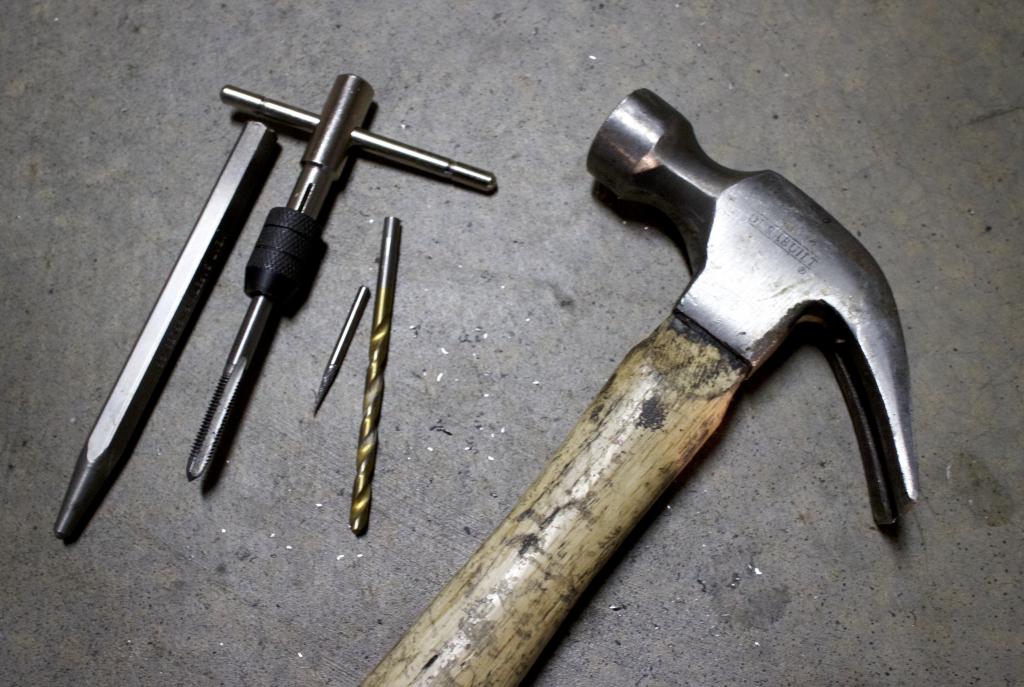 Get your tools all ready. Deburr bit, drill bit, center punch, and M6X1.0 Tap.