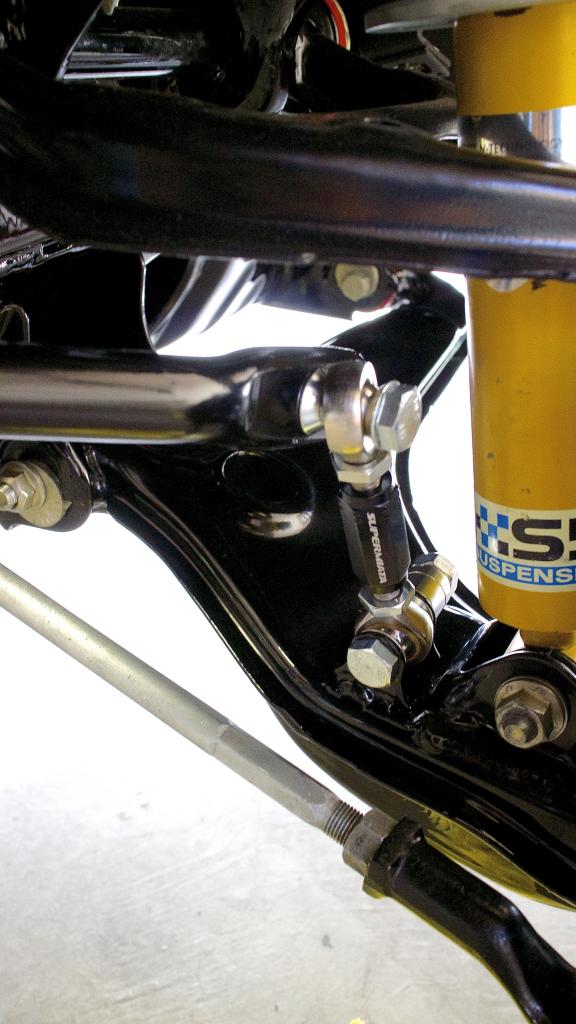 The purty endlinks. I'll adjust them perfectly when I get all the crap in the car for the final ride height.