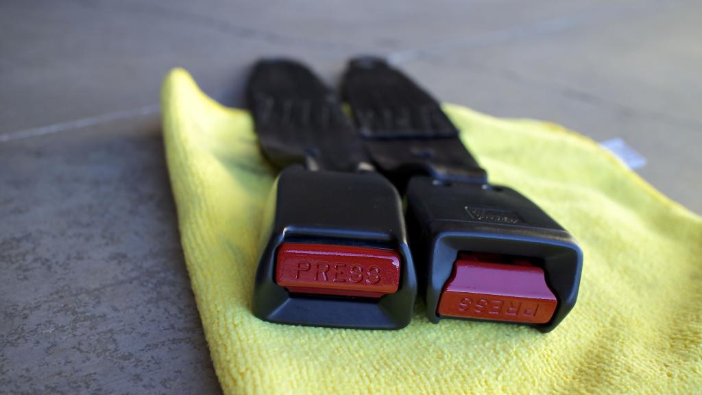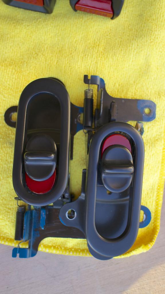 So I decided to repaint them and also repaint my push buttons on the seatbelts. I figured out how to disassemble the seat belt latch so I pulled it all apart and sanded it down smooth and repainted them.