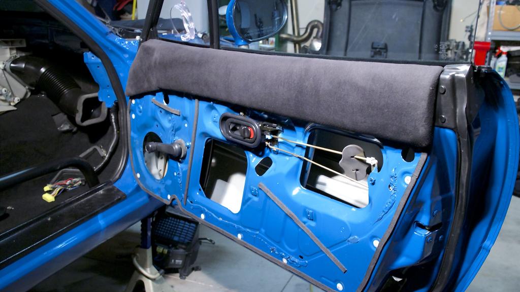 I also cut my door cards for the door lever assembly and once I can put it all back together I'll do a final cut and get it all snazzy so that I can start putting the S.S. on the lower door cards.
