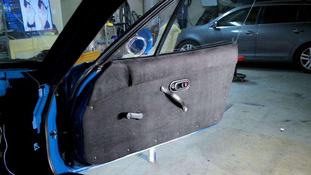 The handles are from Revlimiter(Adam), very cheap for how good they look. I'm so happy I went with the OEM door handle/locks inside, gives it a really clean look. The Porsche RS pull straps just didn't look as clean IMHO. Maybe if I could have found a good metal trim ring for the base of the strap, but that just costs more money!
