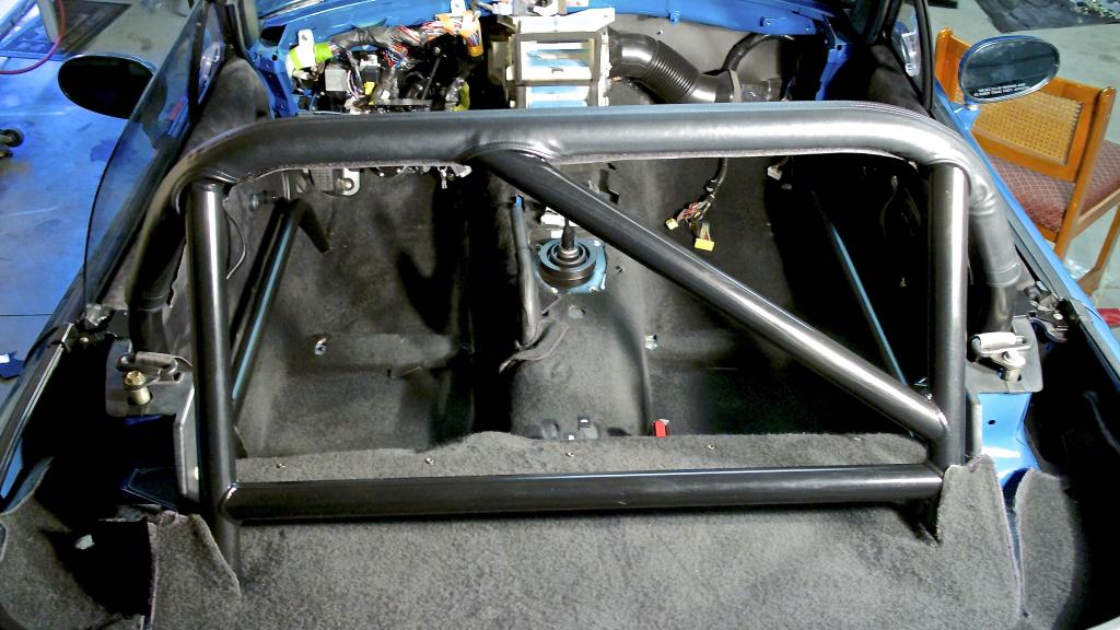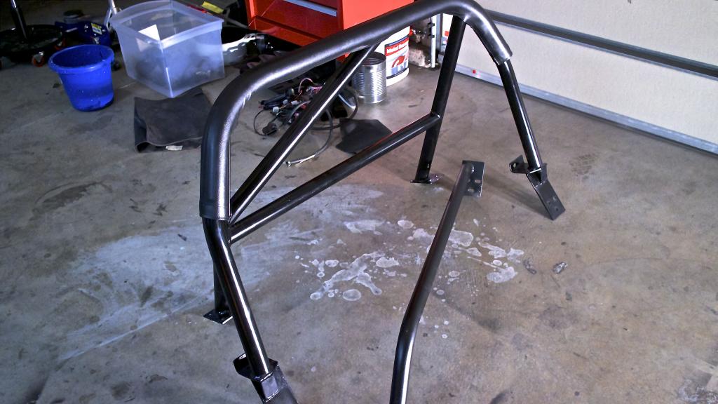 OK that was a long night. Got the roll bar back in and the door bars. First I sprayed some rubberized undercoating on the contact point with the body since I didn't the first time around. Mostly to protect where the paint got scraped off and the drill holes. MUCH easier the second time around. Only took me an hour to put it all together.