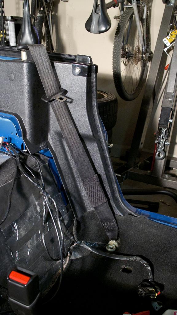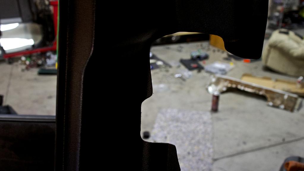 After that I got the seat belts sorted out and went to install the trim panels and....doh! they wouldn't fit for the life of me. So after researching what Bethania Garage suggests, I came up with my own solution. I didn't want to cut the panels in half like they suggested. It looked super tacky in all the photos that I saw.