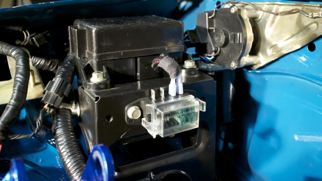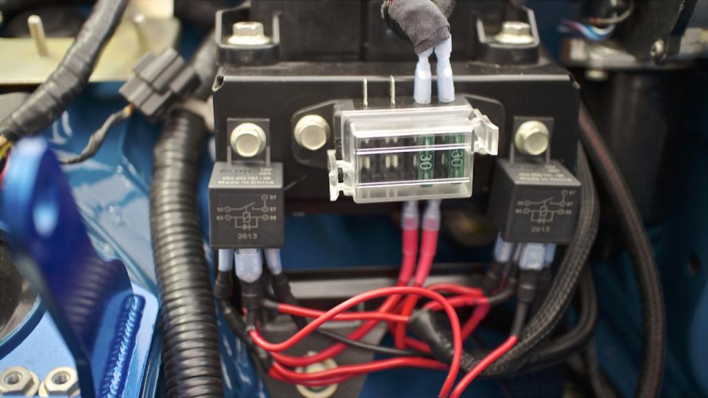 I originally bought the bases for the relay but they sent me the wrong base for the relays so I used insulated spade connectors. I'll eventually order the base to clean it up a little. I think it turned out rather nice though! Out of the way, not terrible looking, and very convenient if there is a problem.