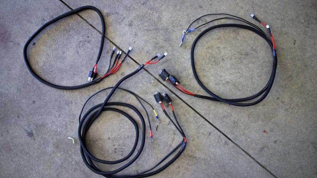 Left harness is the drivers side. I ran the ground to the drivers side firewall ground. Power wires get run to the passenger side to connect to the relays. Right harness is passenger, and the same setup only ground is being run to the alternator.