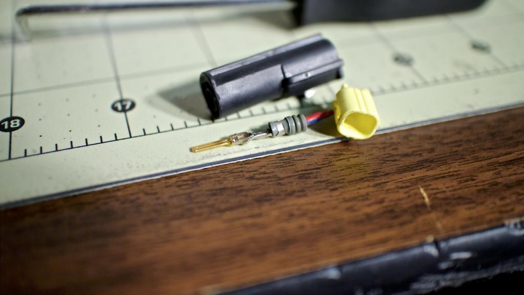 This connector had snapped off but the wire end was so short I couldn't strip the sheath off it. So I disassembled the connector and was lucky to have just enough wire to solder with.