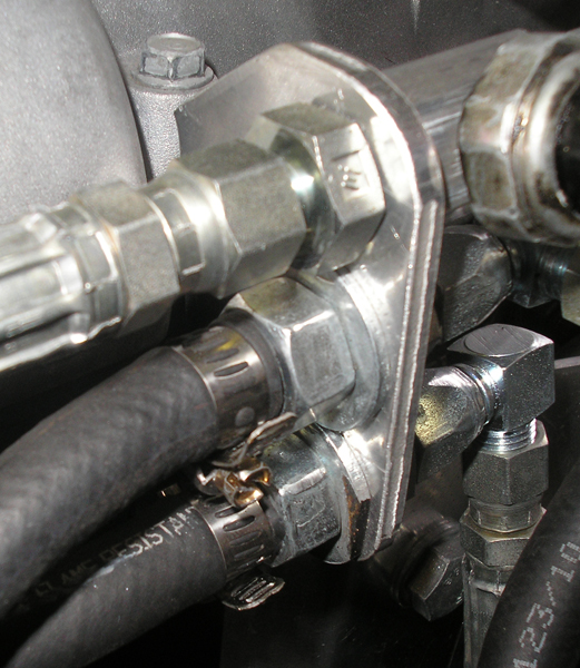 Building that aluminum bracket would be easy with basic tools, and it looks like your fittings and lines are almost the right length already.