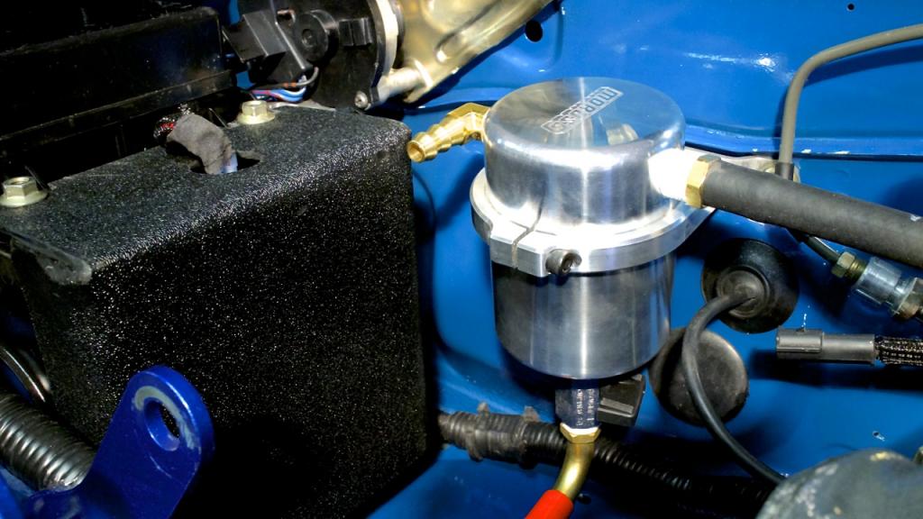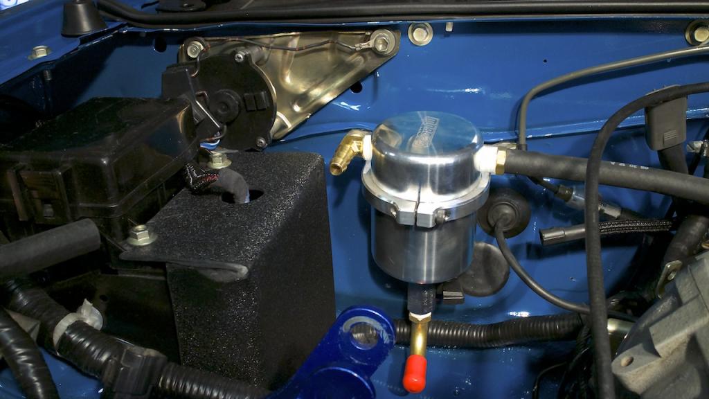 The old one in the car was this leaky huge universal plastic catch can that was about the size of a gallon milk container. I'm quite happy with the Moroso piece. Sure it is expensive but damn is it well made. The lever actuated drain pipe makes emptying it a breeze too. The old version had you unscrew the base, which would have made my mounting solution a pain in the *** to remove every time to do so.