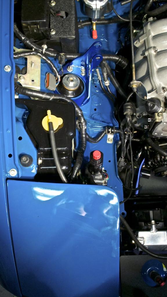 Also mounted the catch can in the easiest/most open spot on the passenger side. I bought a long while ago before I realized how cheaply you can make these things. Oh well, it looks good so who cares!