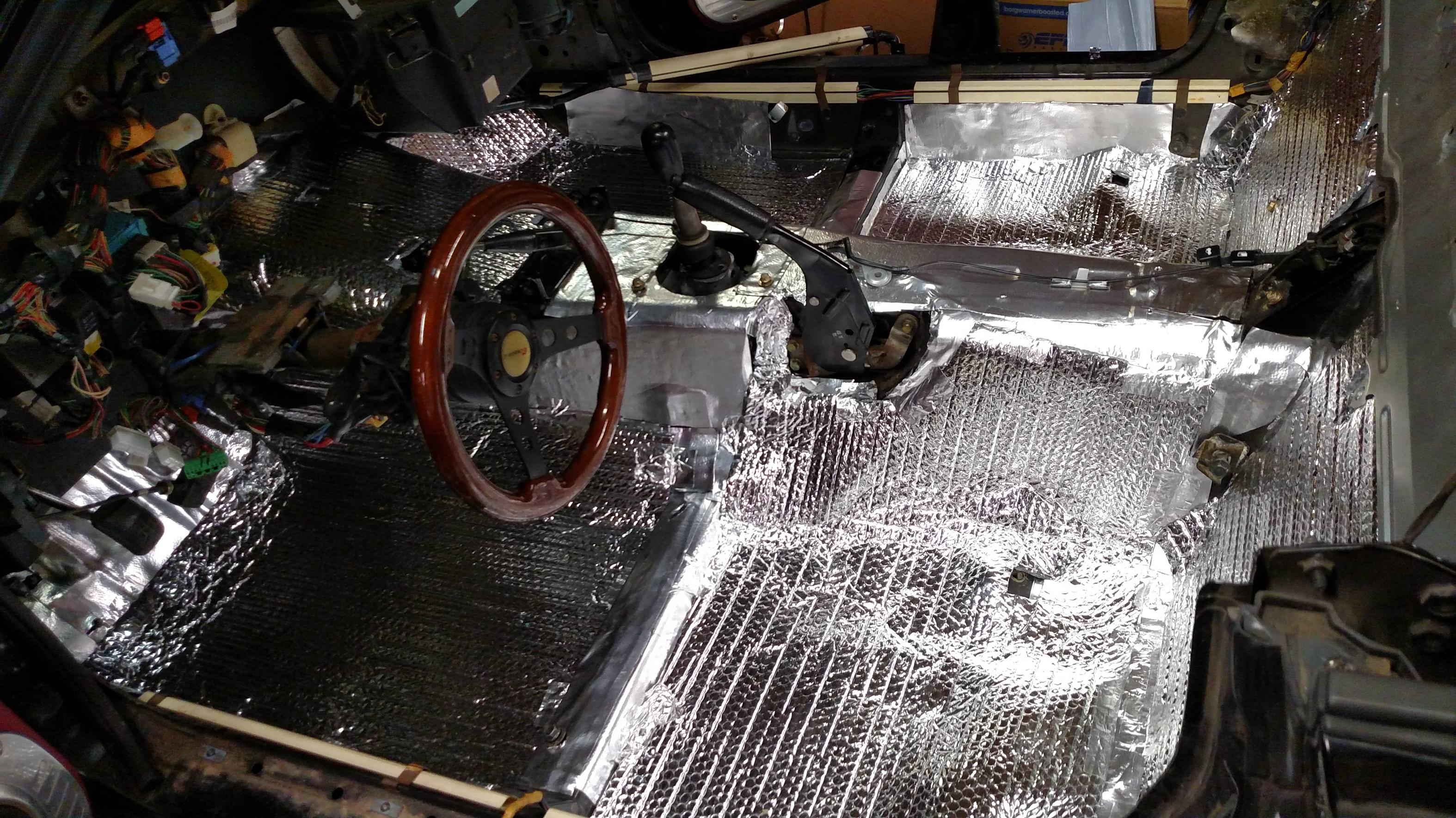 I am trying to do some heat insulation on my miata as well. I'm going to the DIY "lizardskin" which consists of house paint and microspheres. We'll see if that's any good. The heat comes mostly from the header too so may be wrapping it would be a good idea.