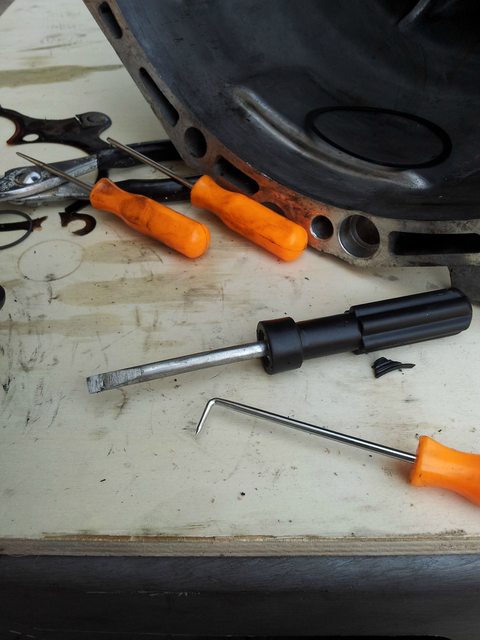 Rear seal was super easy, just need to wedge under the metal lip and go all the way around to get it out.