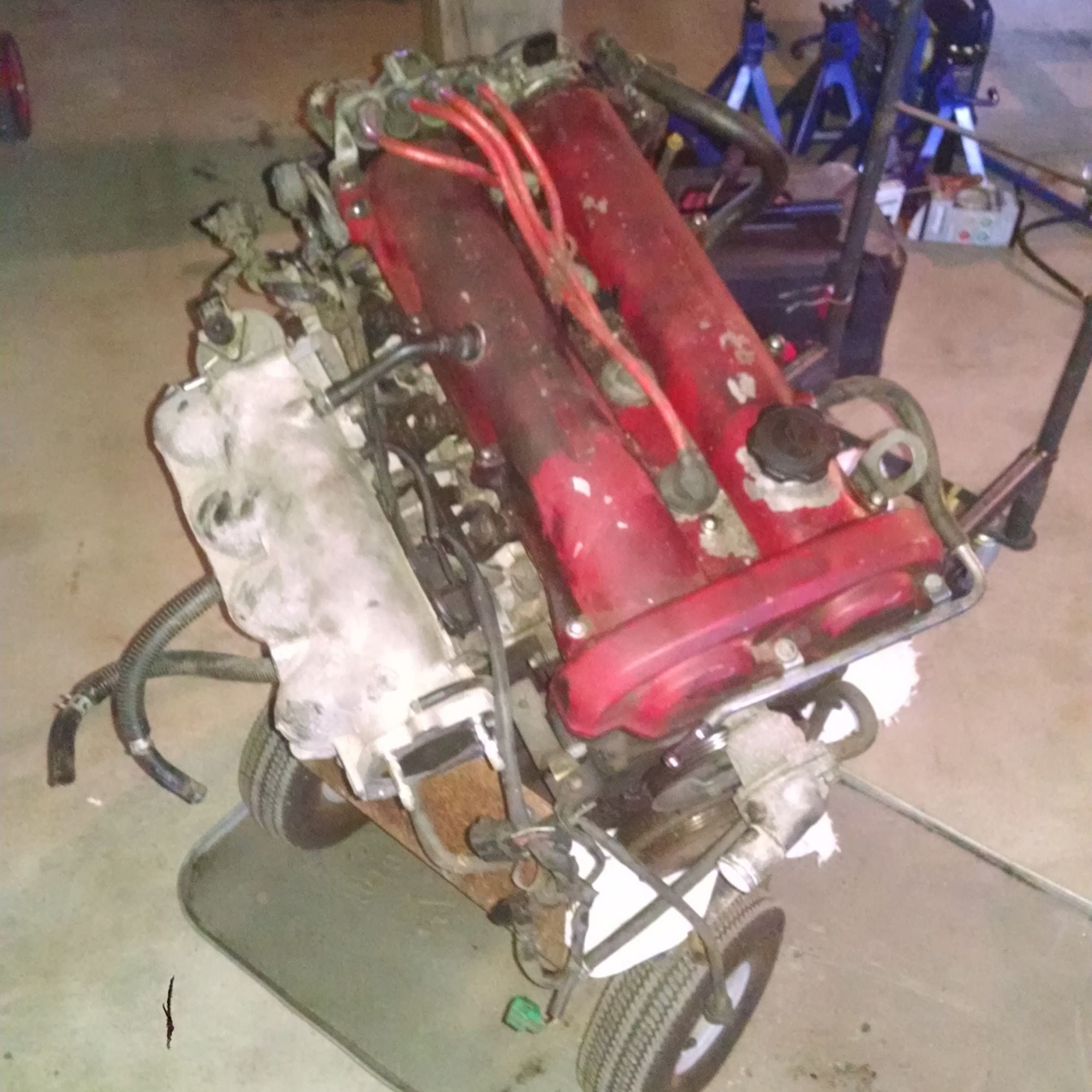 So I decided to swap motors last weekend. The whole endeavor took around 3 days. Day one was the pull and cleaning of the bay, day 2 was swapping parts, day 3 was reinstallation. Here are some pictures, they might be out of order, trying to fix that sorry. The taco taco is holding up fine with around 2.5k on it. The rebuild motor has around 100 miles on it now, had crank wobble but found out I was sent an snc key from tcm, swapped it out with the proper 1.8 key and redid the loctite fix. The original valve cover had a crack in it so I picked up a protege one. Having lots of tuner studio issue, I'm still not on hi-res right now and I am having typical connection issues after updating to tuner studio 3.0