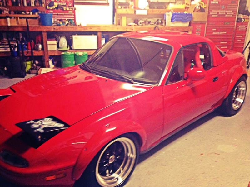 Credit for the valve cover goes to the previous owner. I like it as far as unique style goes but not exactly my cup of tea. I have more of a clean style. It will be redone in the future along with the driver headlight cover. Painting the hardtop and a-pillars black in the next week or so.